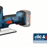 Serra vertical (Tico-Tico) a bateria de 18 V. Profundidade de corte até 120 mm (em madeira). 2.700 rpm. Placa base ajustável a 45º. Substituição da lâmina de serra SDS. Movimento pendular de 4 escalões. Travão de motor. Função de sopro. Sistema ECP. Sistema EMP. Luz LED. Material fornecido: 5 Lâminas de serra (2x T144DP; 2X T244D; 1X T308BP). Proteção anti-estilhaço.L-BOXX 136.