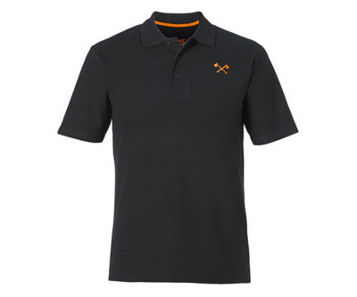 Cor preta, 100% algodão. colarinho clássico, machados cruzados bordados no peito, faixa interior do colarinho em laranja. Tamanho XS - XXL. 130319
