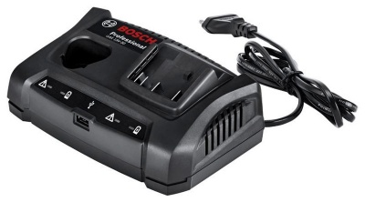 Carrega baterias de 12V, 14,4V e 18V. Carregamento sequencial de baterias. Porta USB.