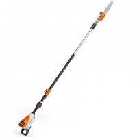P.V.P. sem bateria. Com a podadora HTA 160 tem a máquina adequada para as podas de árvores. Ideal para arboristas, fruticultores e gestão municipal de espaços verdes a podadora de altura ligeira e potente com motor STIHL de grande qualidade e duração sem manutenção e acionado pelo sistema de baterias potentes AP/AR a combinação ideal para corte de ramos até 12 cm de diâmetro. A podadora de altura é muito silenciosa e é ideal para zonas sensíveis ao ruído, como zonas residenciais. Corrente 3/8“ PMM3 de grande precisão e alto rendimento de corte para efetuar cortes de maneira fácil e obter um corte limpo. Guiador ergonómico permite um controlo intuitivo tanto para destros como esquerdinos. Manga antideslizante na haste para maior segurança. Haste telescópica de 285 a 405 cm de comprimento .