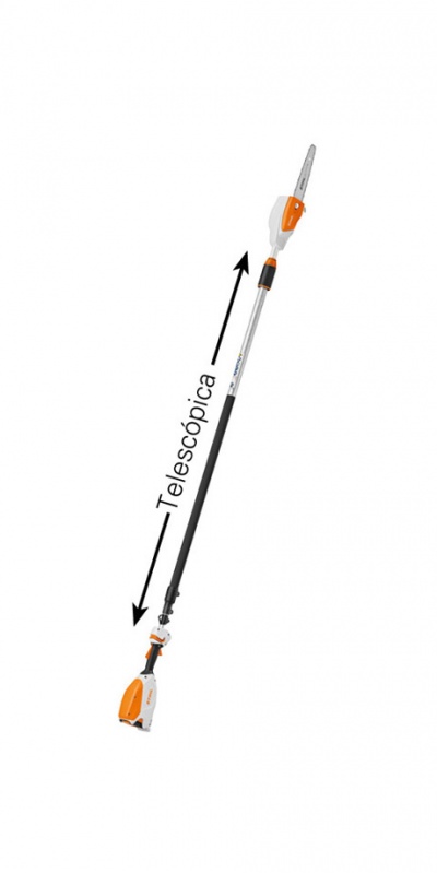 P.V.P. sem bateria. Com a podadora HTA 86 não tens limites. É a ferramenta adequada para as podas de árvores com alturas superiores. A haste telescópica ajustável de 270 cm a 390 cm é perfeita para os trabalhos em altura. Ideal para arboristas, fruticultores e gestão municipal de espaços verdes a podadora de altura ligeira e potente com motor STIHL de grande qualidade e duração sem manutenção e acionado pelo sistema de baterias potentes AP/AR a combinação ideal para corte de ramos até 12 cm de diâmetro. A podadora de altura é muito silenciosa e é ideal para zonas sensíveis ao ruído, como zonas residenciais. Corrente ¼ “PM3 de grande precisão e alto rendimento de corte para efetuar cortes de maneira fácil e obter um corte limpo. Guiador ergonómico permite um controlo intuítivo tanto para destros como esquerdinos. Manga antideslizante na haste para maior segurança.