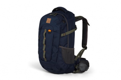 Cor Azul, poliéster/nylon revestido com PU, tamanho aprox. 53 x 32 x 24 cm, 30 litros, com muitas opções de armazenamento, rede para permitir a circulação de ar, bolsa para garrafa, correias de compressão, protecção contra a chuva. 070719