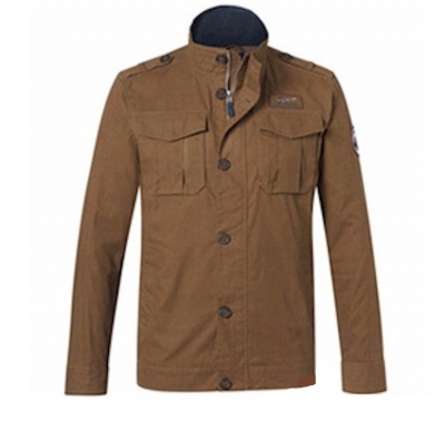 Cor Castanho claro, 75% algodão, 25% nylon, forro: 100 algodão, superfície suave com revestimento de cera, fecho de correr metálico e botões, dois bolsos de peito, dois bolsos laterais, um bolso interior com fecho de correr, um bolso interior aberto. Tamanho S - XXL. 070719