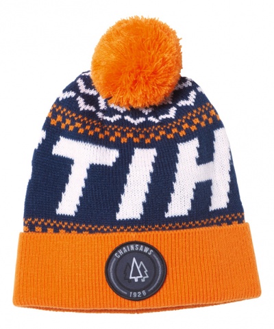 Cor azul e laranja, 70% acrílico, 30% lã, com descrição STIHL, emblema "CHAINSAWS". Tamanho único. 070719