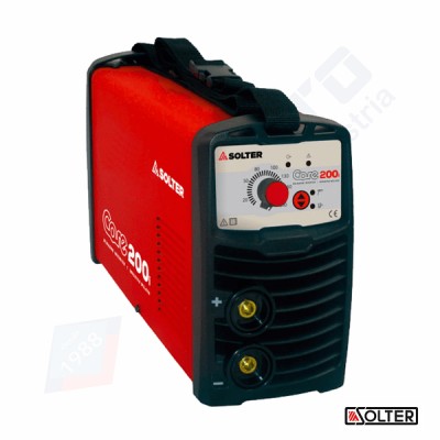 Soldador inverter 230v/50hz tipo MMA, regulação 20-200A, corrente máxima de 200A para um ciclo de trabalho de 60%, potência mínima requerida = 5500w. Electrodo de 1,6 a 5mm. Incluí: Porta-electrodos com cabo de 2m, cabo terra de 1,5 m.