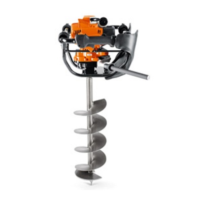 Com broca de 120 mm. Perfurador de solo de um utilizador confortável capacidade de perfurar buracos no chão com brocas até 200 mm de diâmetro. Potente motor STIHL 4-MIX ® de Com broca de 120 mm. Baixas emissões. Punho no quadro com baixa vibração e travão de broca Quickstop acionado quando o perfurador roda e a alvanca toca na coxa do utilizador parando imediatamente a broca. Ideial para uma variedade de tarefas de perfuração como furos simples no terreno para a recolha de amostras de solo. Grande variedade de acessórios de perfuração.